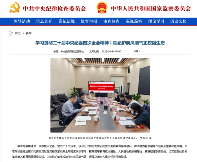 北京理工大学党委二十届中央任期第六轮校内巡视完成进驻